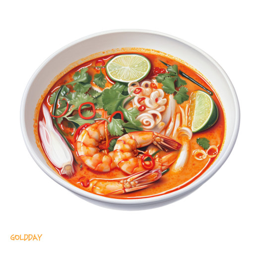 태국을 대표하는 매운 새우 수프입니다. 레몬그라스, 갈랑갈, 카피르 라임잎이 조화를 이루며, 고추와 라임 주스, 피쉬 소스가 어우러져 매콤하고 새콤한 맛을 냅니다. 해산물이나 닭고기를 주재료로 사용하기도 하며, 신선한 향신료가 중심이 되는 요리입니다.